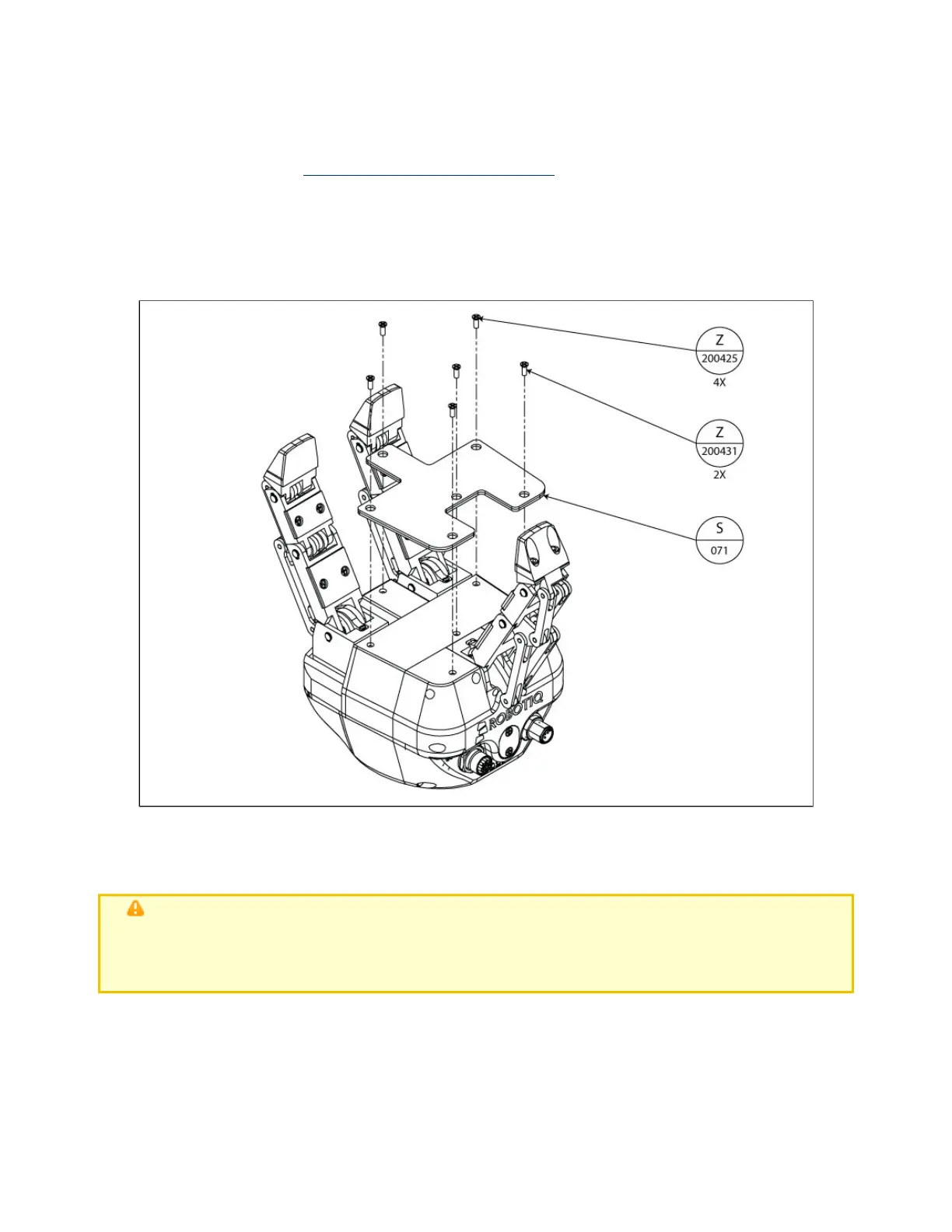 Figure 6.3.2.1 : Assembly of the Palm Pad (S-071) to the Robotiq 3-Finger Adaptive Robot Gripper.