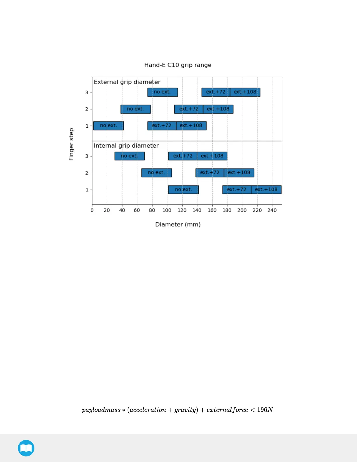 different orientations and finger extender allow 2 positions. Here’s a summary of the diameter range combined with the gripper’s