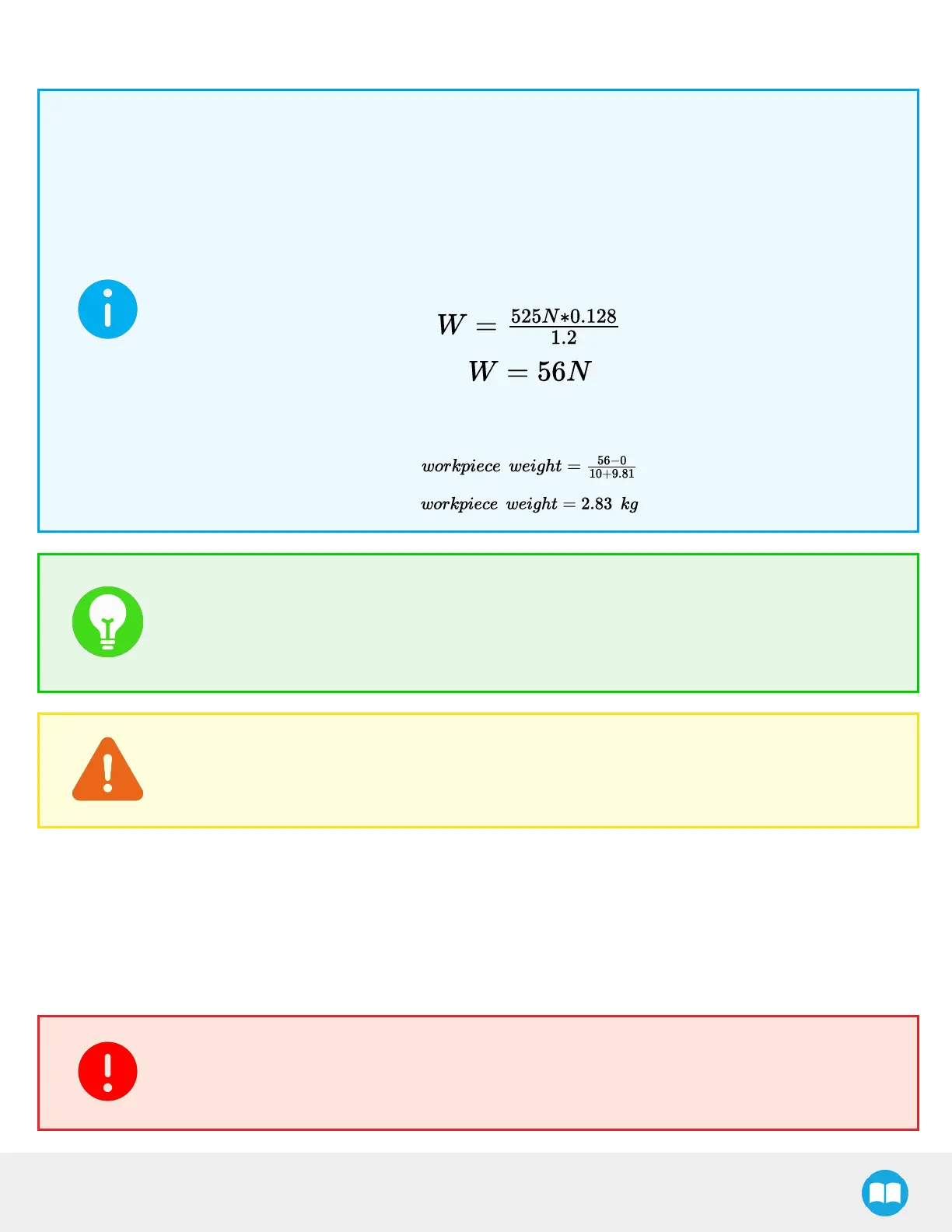 Calculation of maximum moment and force values should include robot acceleration and safety factors.