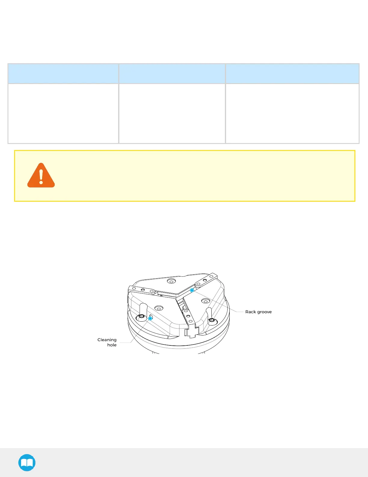 thoroughly. If debris are still present, blowing clean and dry air into the rack groove or into cleaning hole can help remove