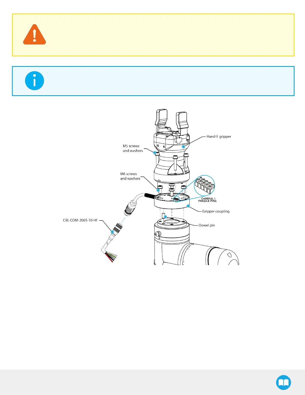 The following images display the Hand-E Gripper, but the same structure applies.