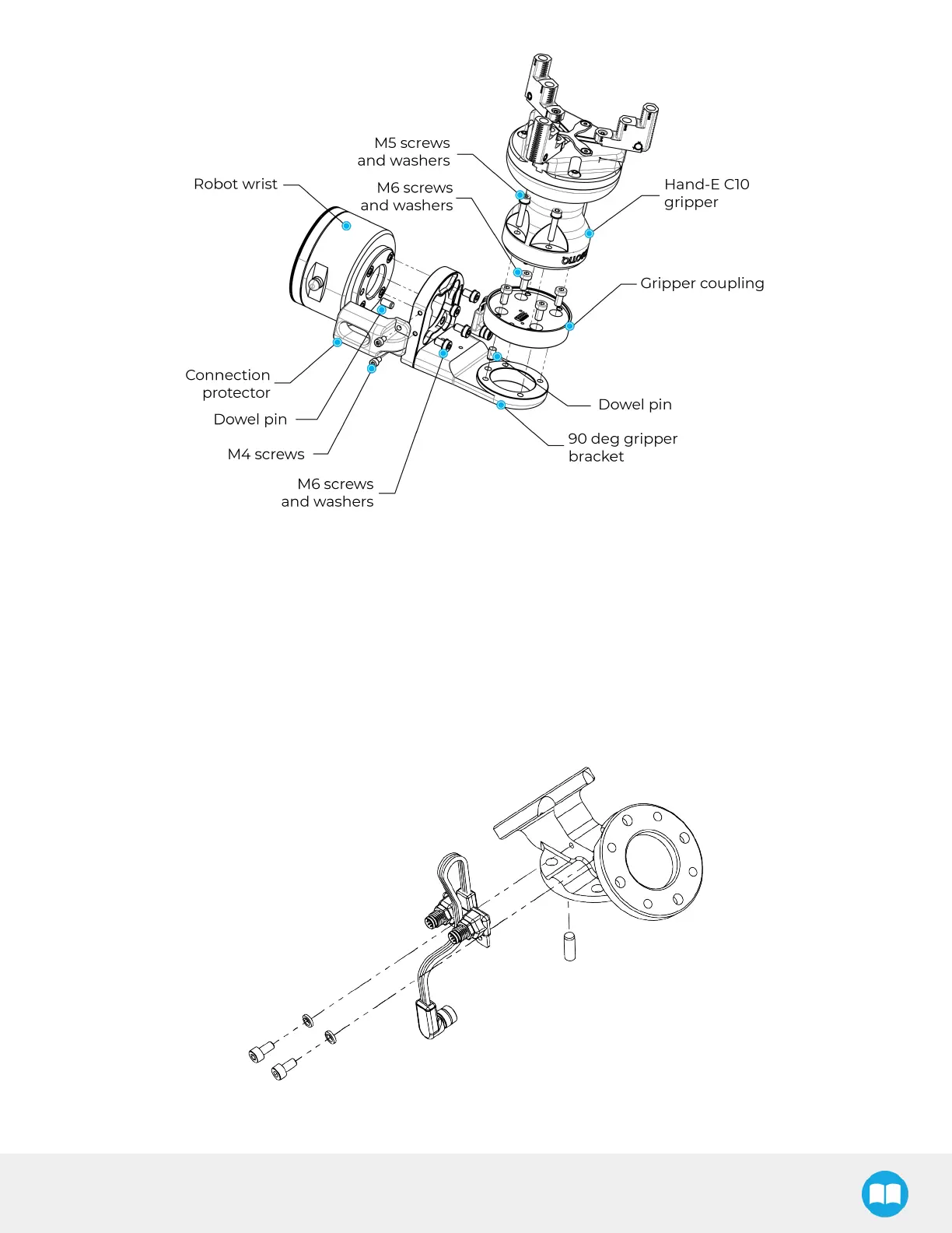 Fig. 3-5: 90˚ Bracket and the Hand-E C10 Gripper