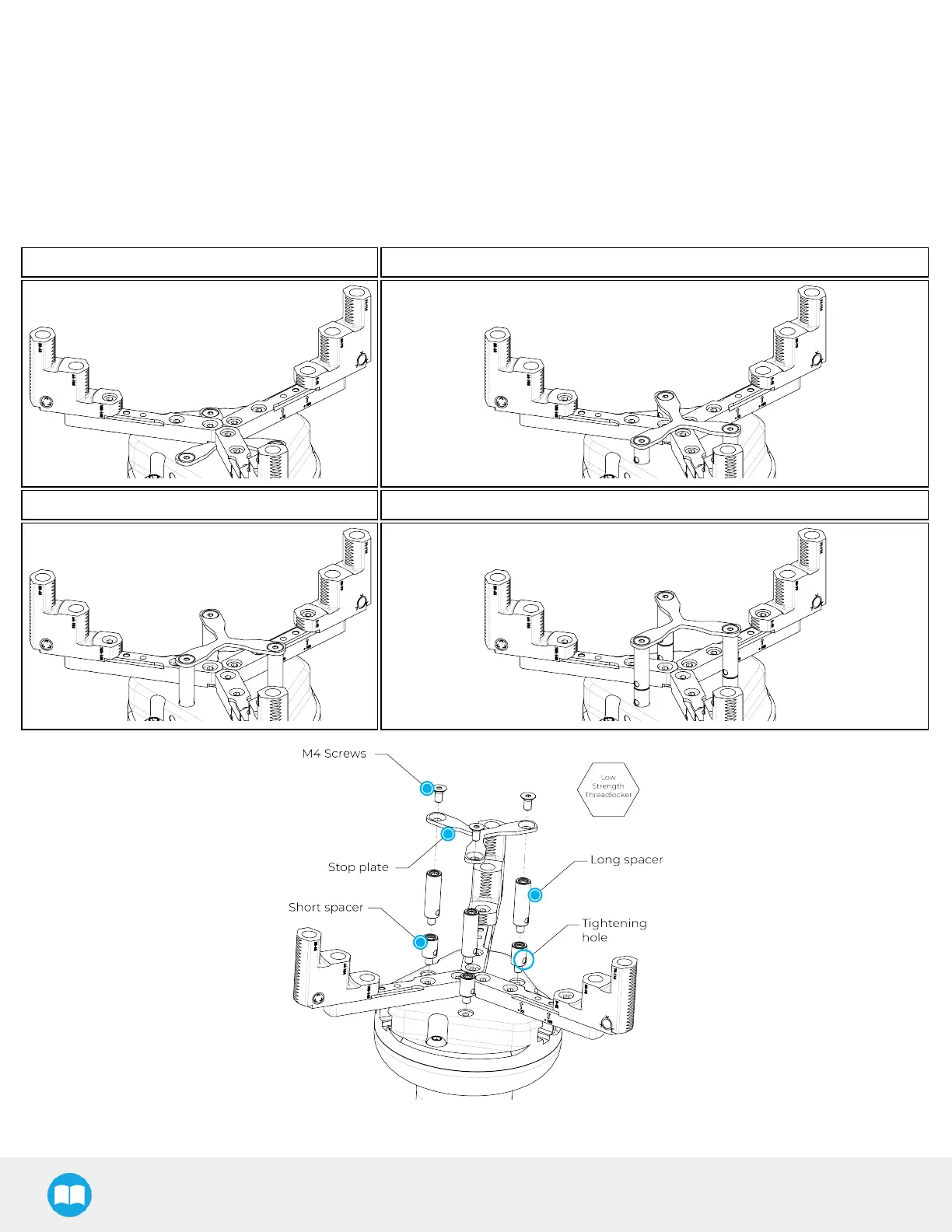 5. Apply low strength threadlocker on the provided M4 screws and secure the stop plate. Tighten the three (3) M4 screws to