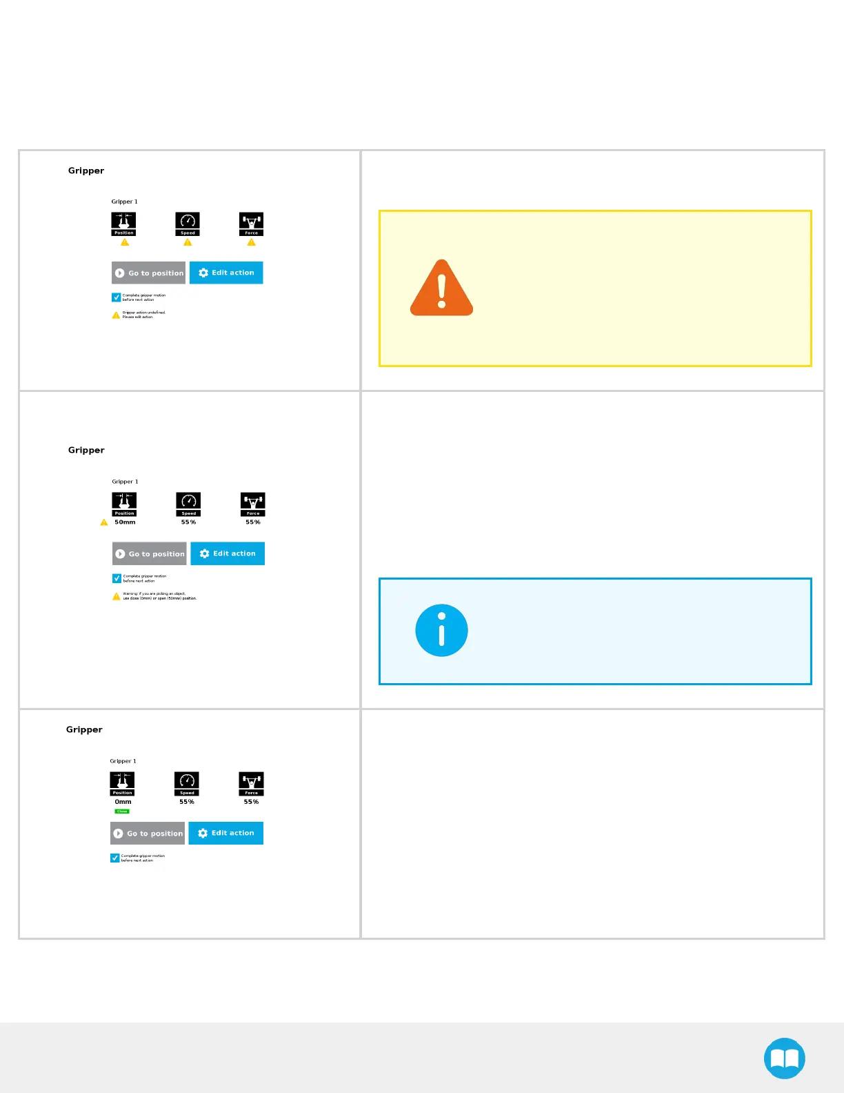 messages. Tap Edit action to modify the gripper’s action.