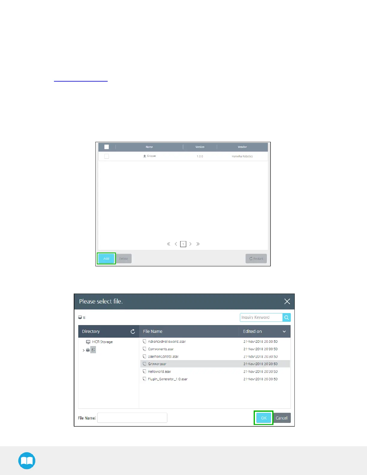Fig. 3-8: Plugin management menu with Add button highlighted.