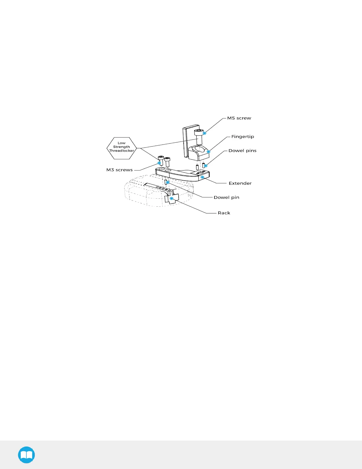 4. Apply low strength threadlocker on the provided M5 screw and secure the fingertip to the extender (5.65 Nm / 50.00 in-lb).