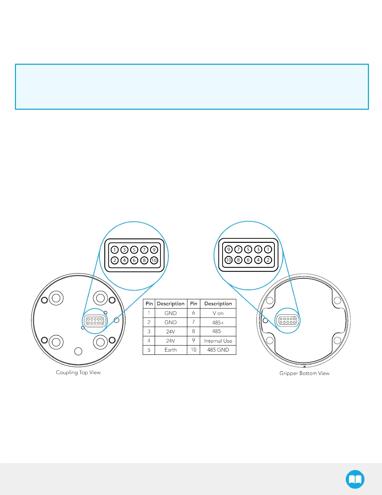 power supply to the gripper and enables serial RS485 communication to the robot controller.