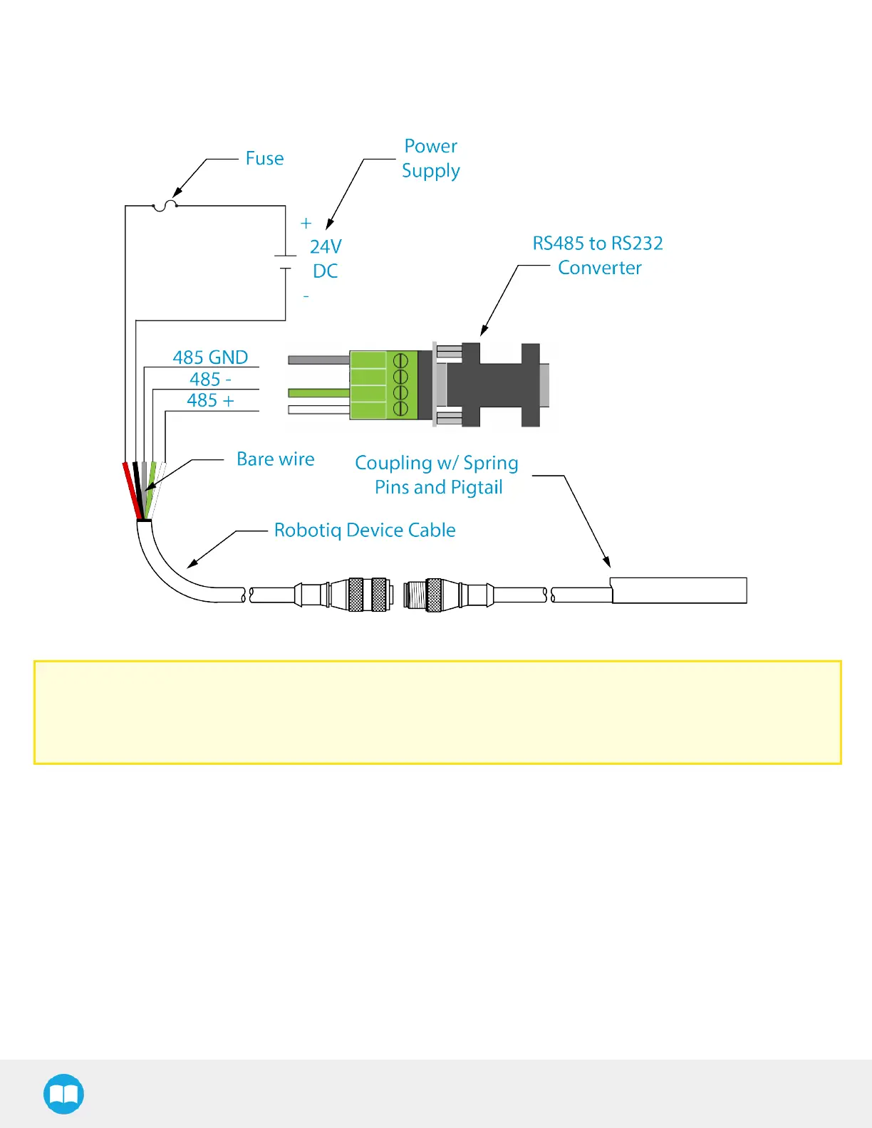 Fig. 3-9: Wiring diagram of Hand-Efor robots requiring a RS485 to RS232 converter. Includes a device cable, power supply, fuse and