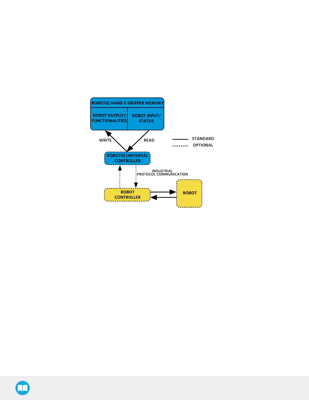 Grippers share their internal memory with a robot controller. One part of the memory is for the robot output; gripper