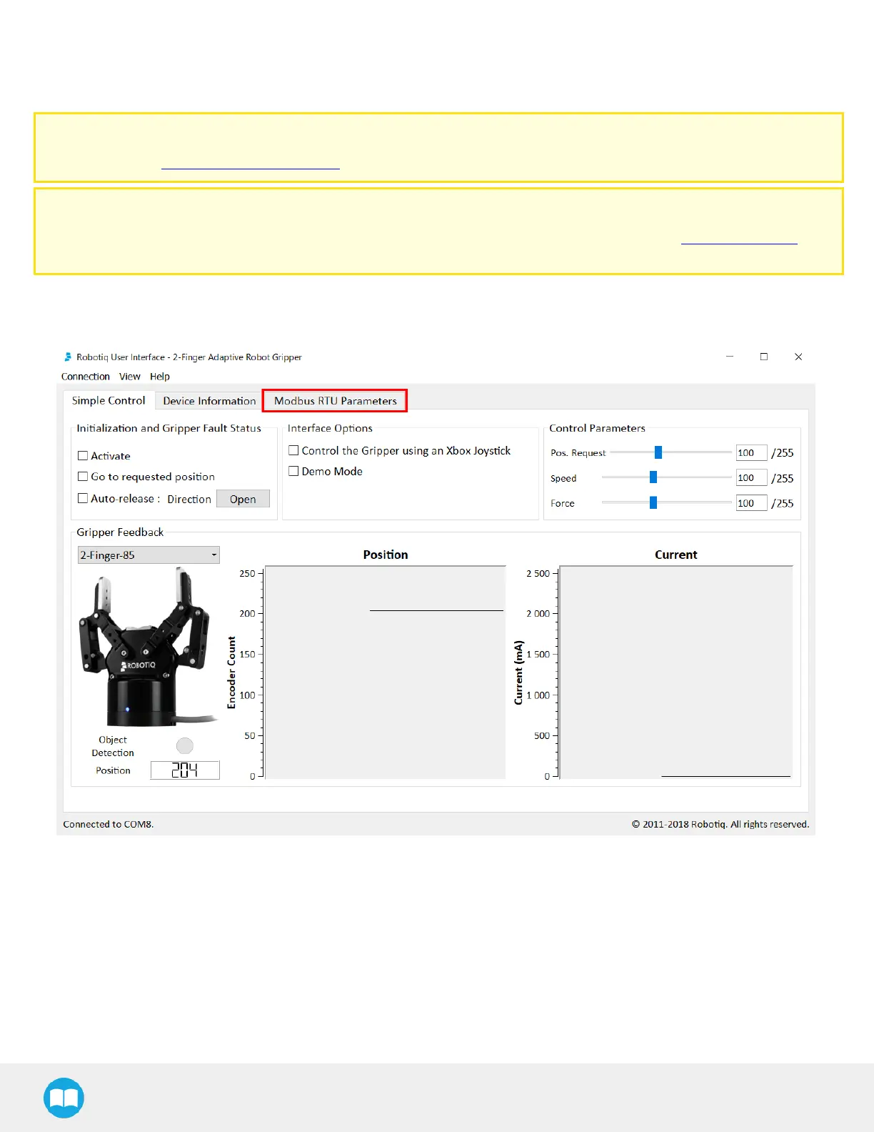the Robotiq User Interface (RUI) for information on the installation and control of the RUI.