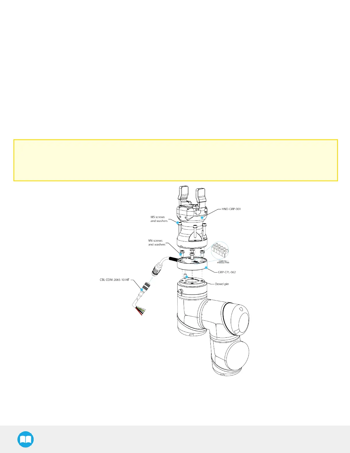 1. Secure the gripper coupling on the robot wrist, and use the coupling dowel pin to align parts.