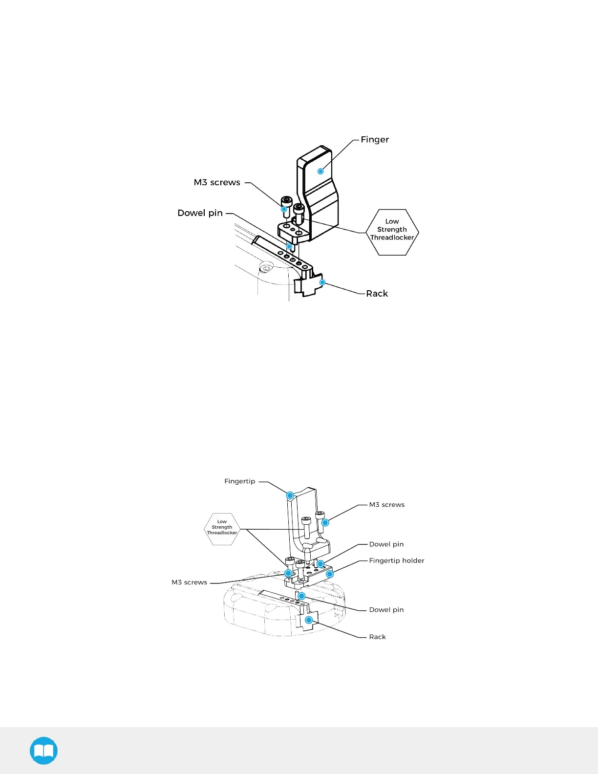 4. Apply low strength threadlocker on the provided screws and secure the fingertip to the fingertip holder.