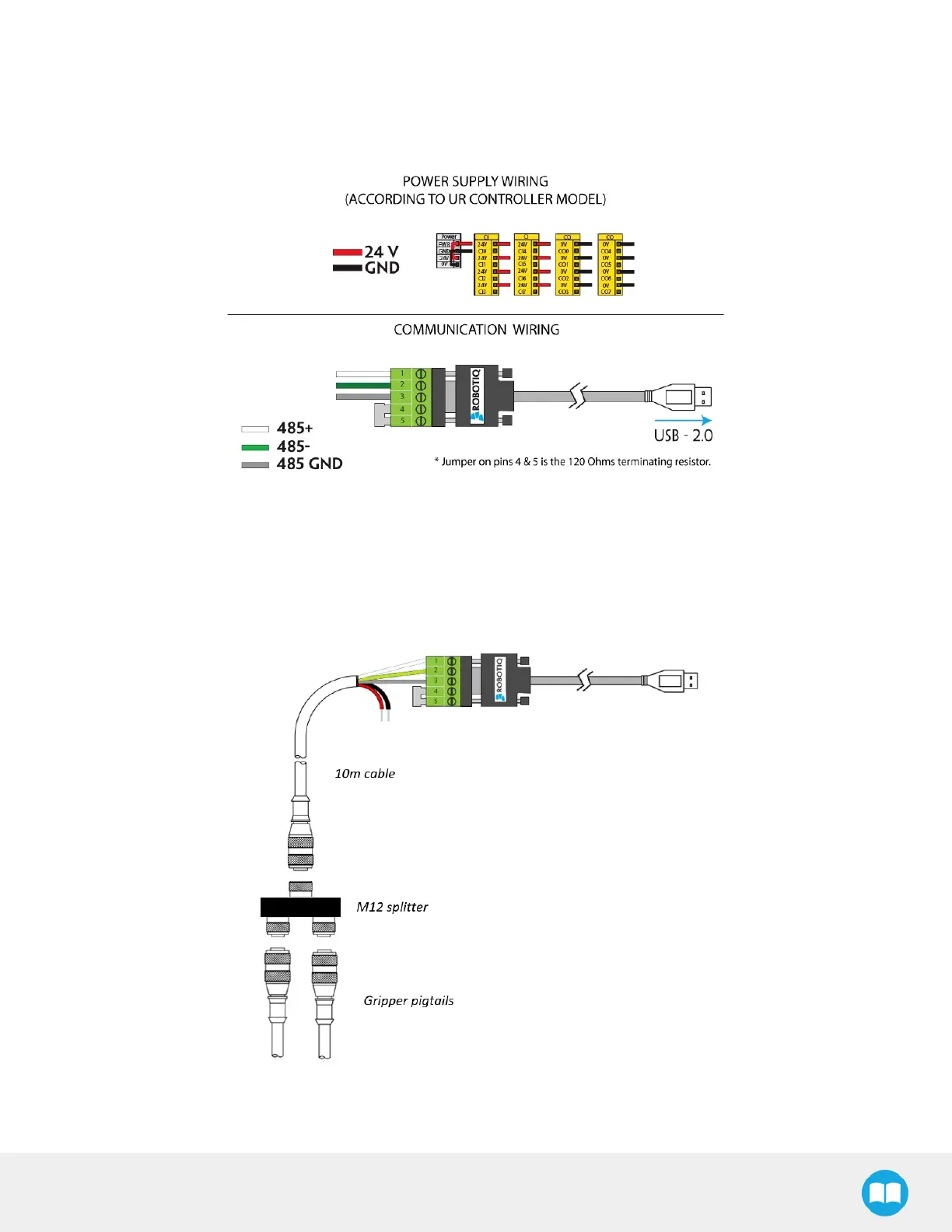 must be used. Use M12 splitters (ACC-SPLIT-M12-2:1) to connect all the grippers pigtails to one 10m cable