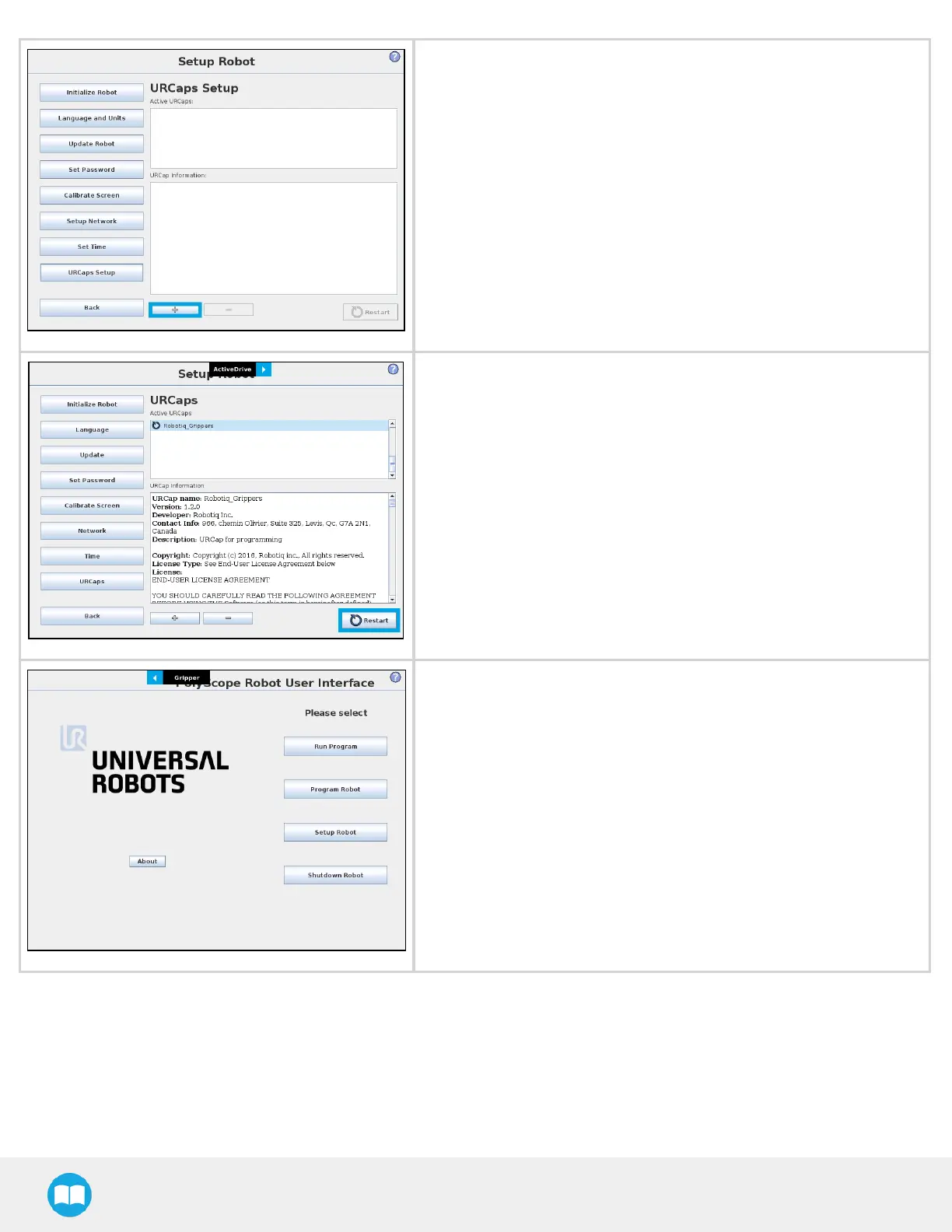 l Restart PolyScope to complete the URCap installation. By doing so, you