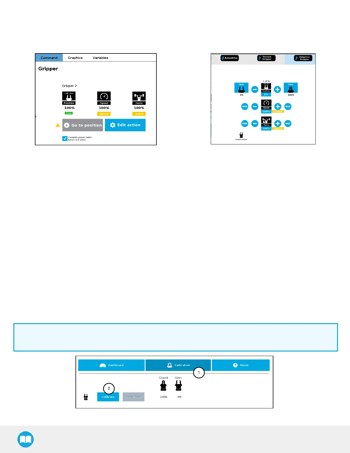 A gripper that has not been calibrated will display open and closed values in percentage.