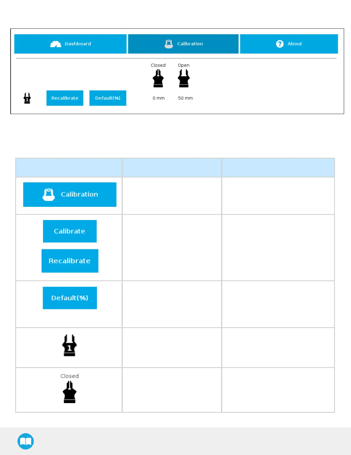 Following their respective calibration, the grippers will display their actual stroke, from the fully closed to the fully open position.