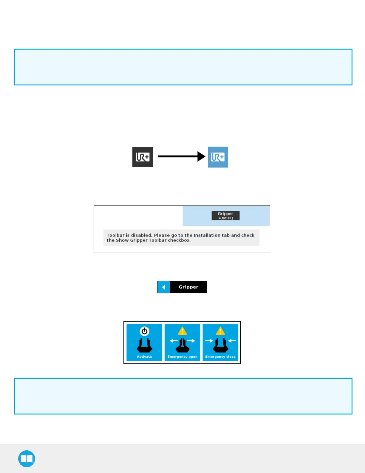 The Gripper URCap package contains the Gripper Toolbar. Therefore, the toolbar is automatically installed with the URCap