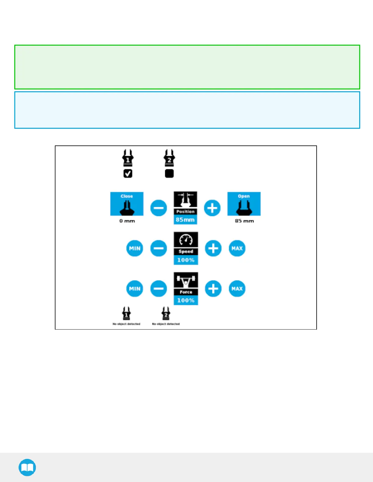 For consistency, selecting multiple grippers at the same time displays the open and close values in percentage since their