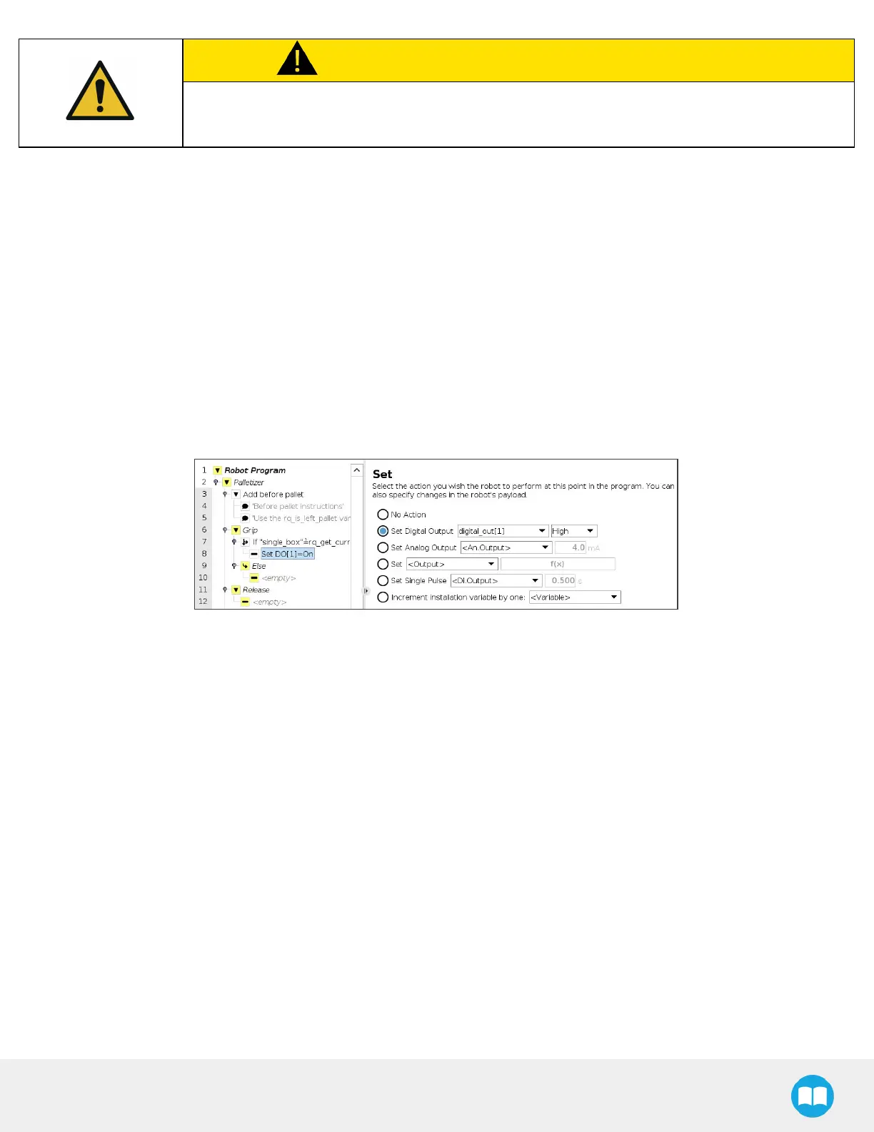 19. Repeat steps 15 to 18 with the other Set node, but select the digital output to which the other gripper isassigned.