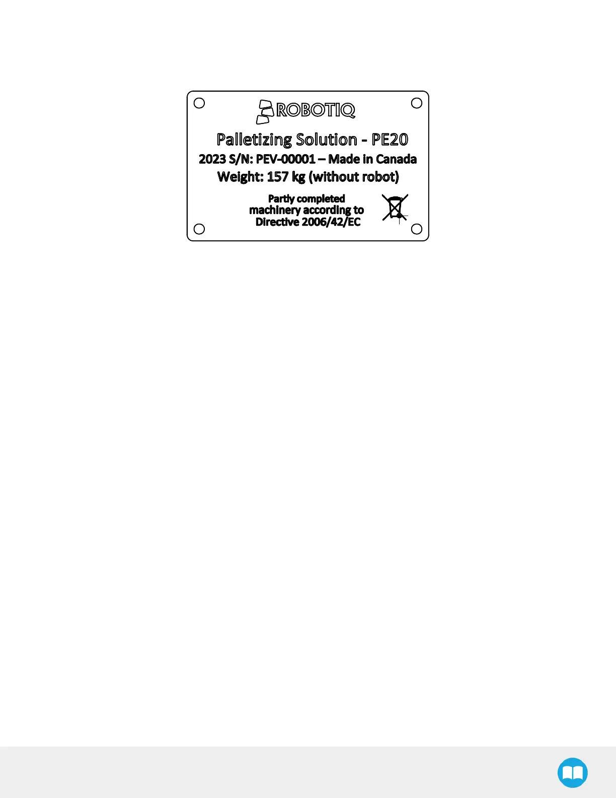 The following identification plate is screwed to the bottom of the Solution'spedestal.