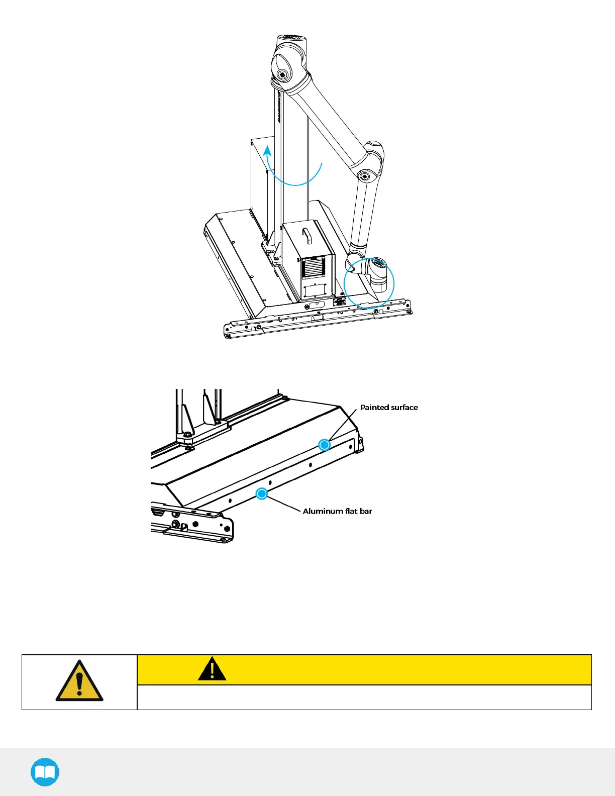 The robot wrist should be touching the painted surface approximately 25 mm (1 in) above the aluminum flat bar on the side of the