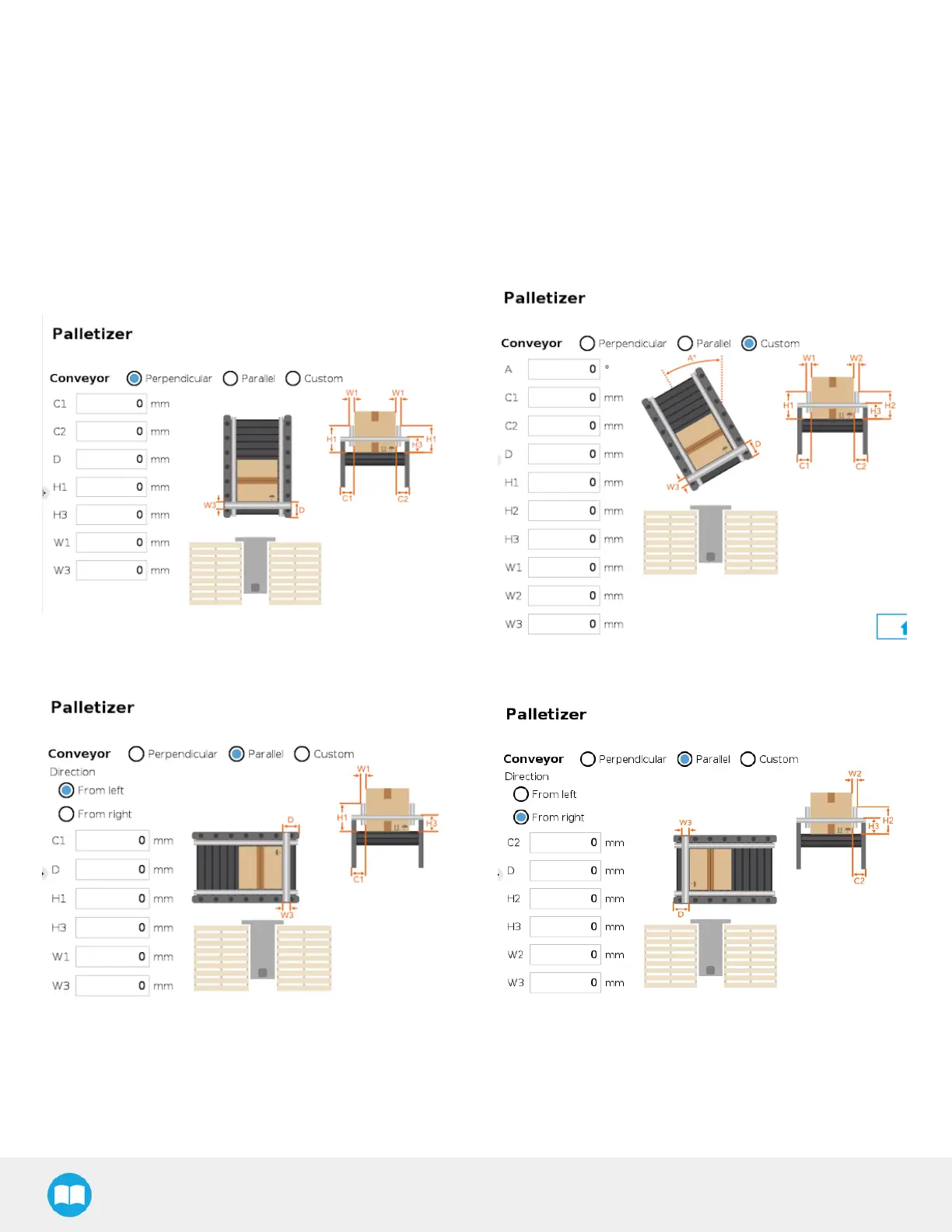 Tick the radio button that correspondsto the palletizing cell (Perpendicular, Parallel, Custom).