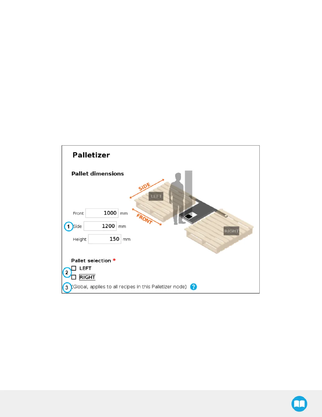 Refer to the diagram and select which pallet (left and/or right) you want to palletize or depalletize. Tick both boxesto process