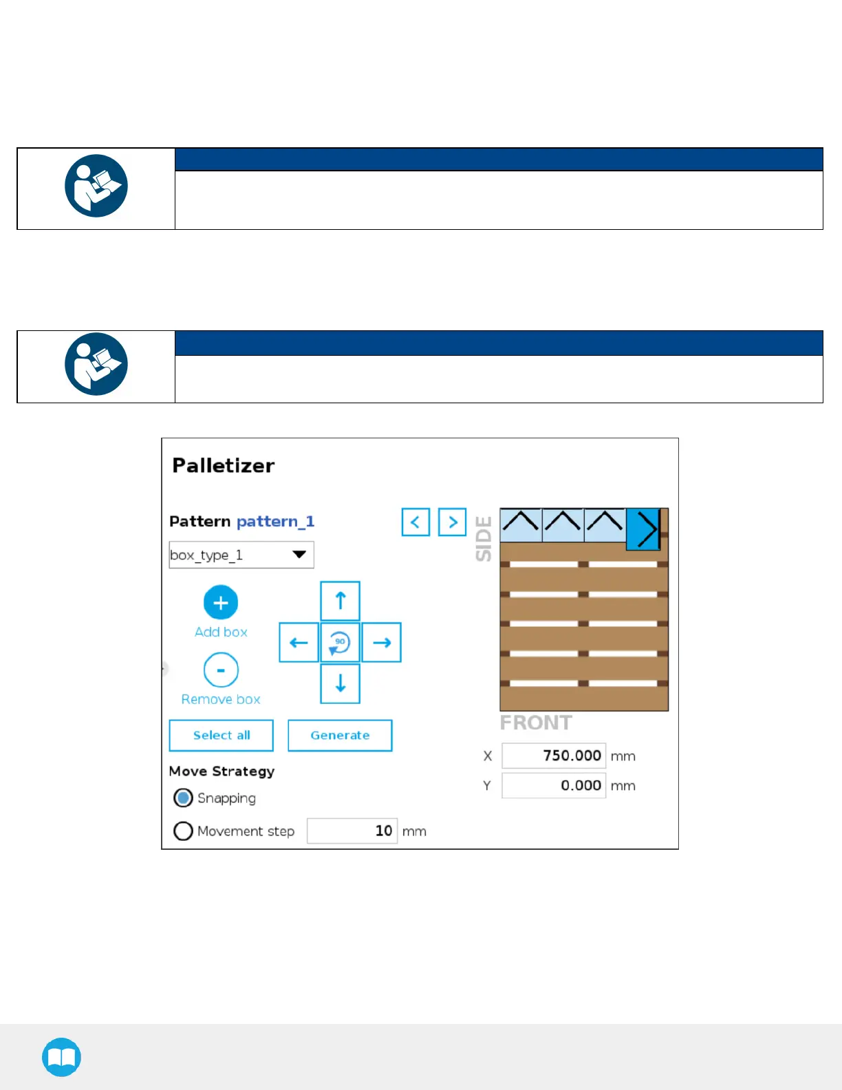 Tap the directional button that corresponds to the direction in which the box needsto move (up, down, left, right).