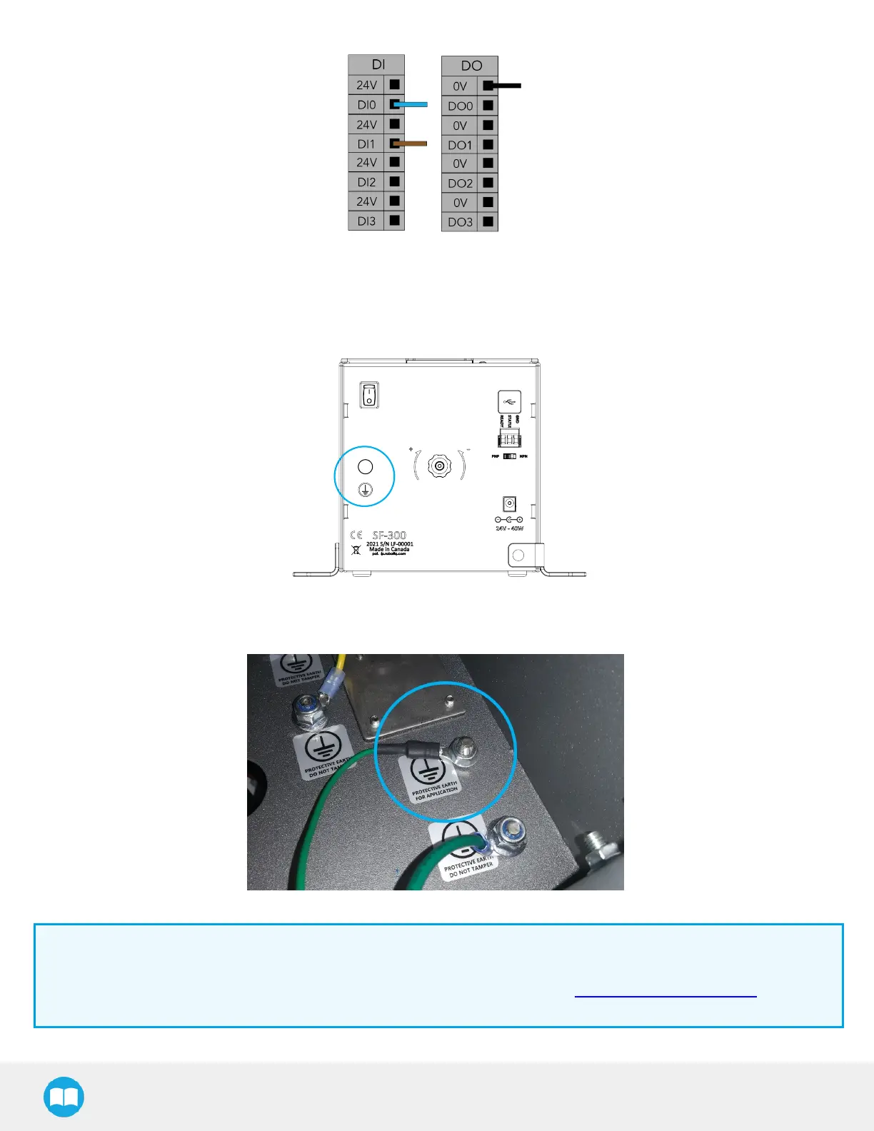 6. Connect the protective earth cable (green)to the protective earth ring terminal at the back of the feeder on one end, and to