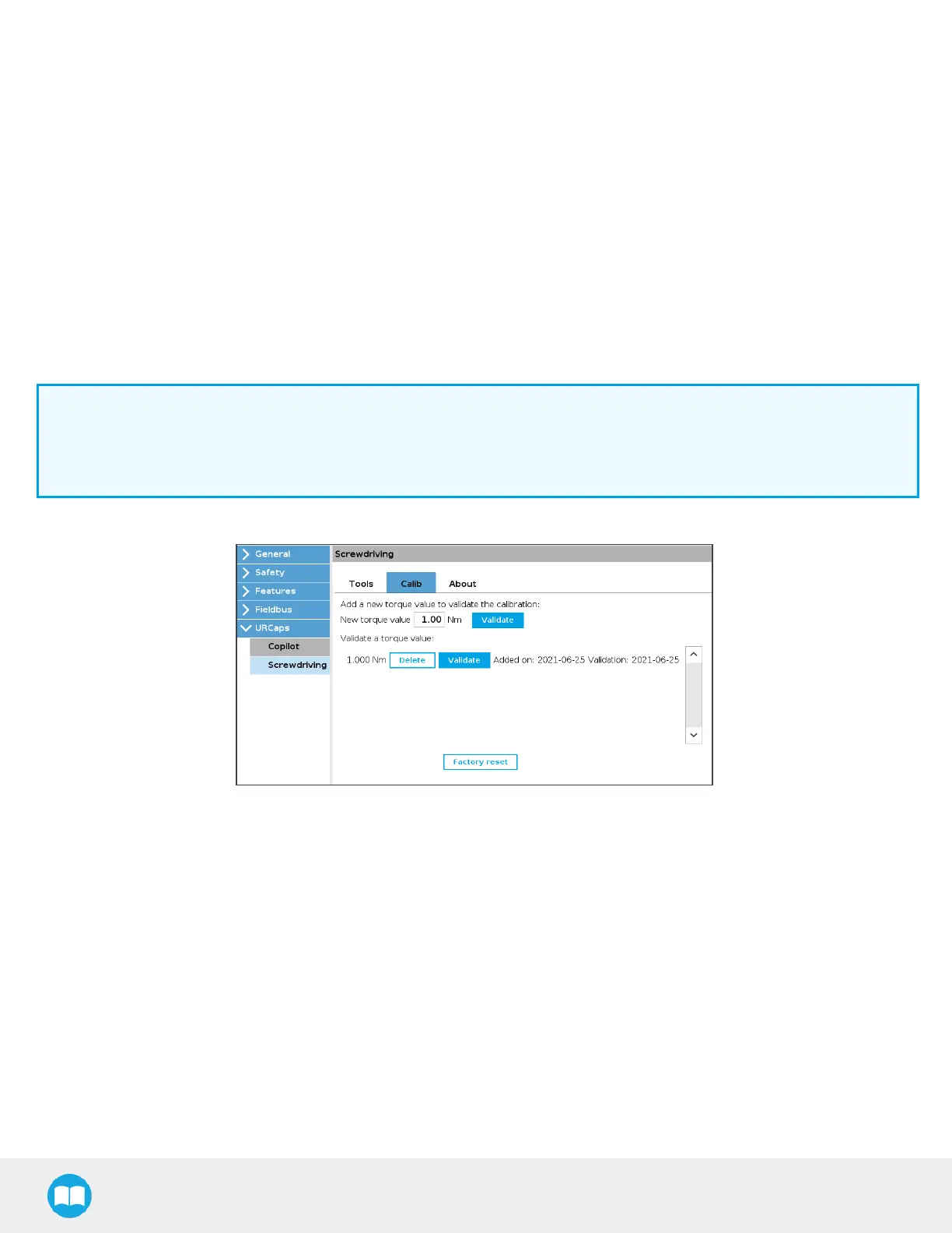 slightly lower or higher than the requested torque value depending on the mean value from the Validation of adjustment