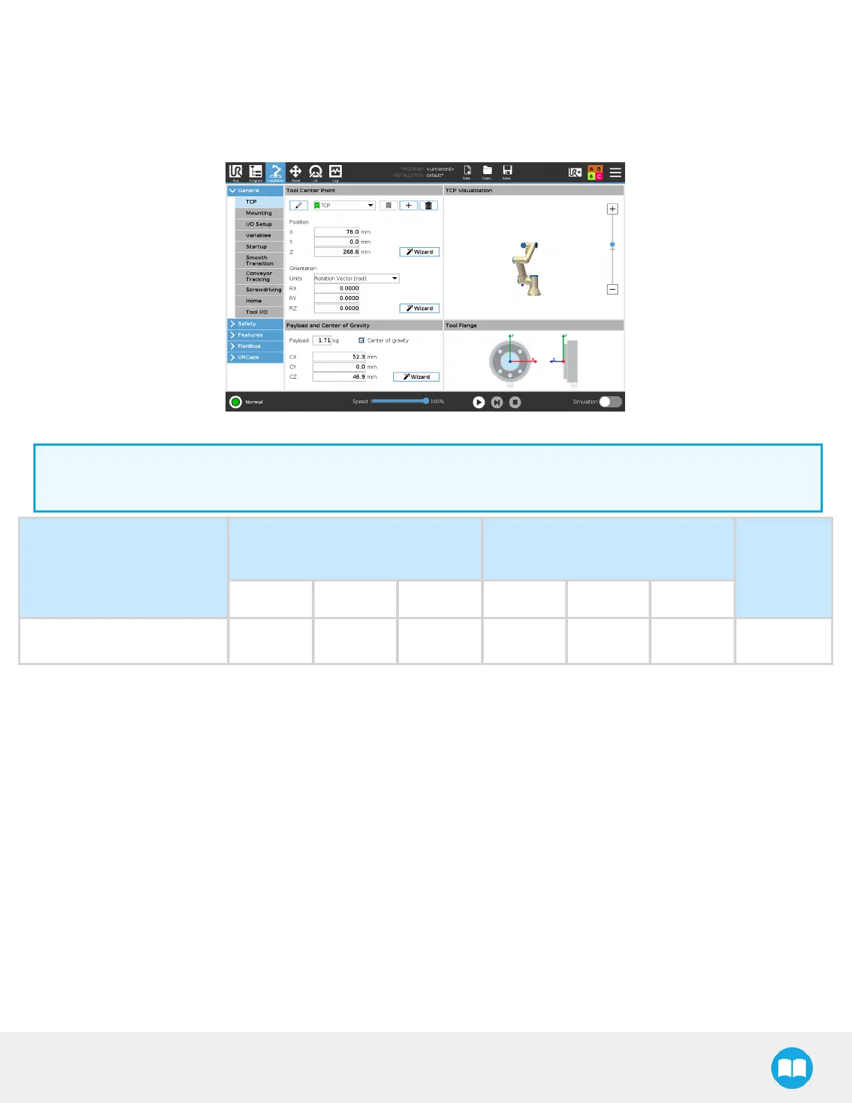 Fig. 7-5: TCPMenu in the PolyScope Interface for e-Series.