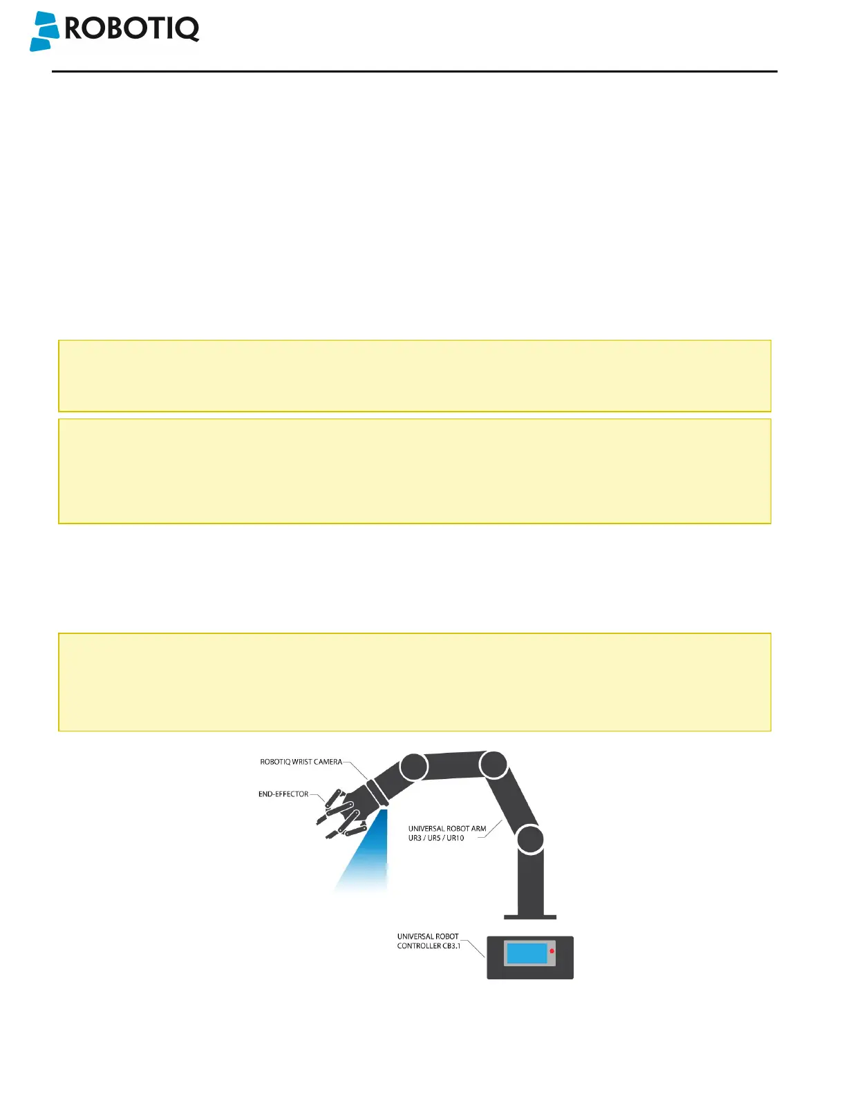 term "Vision" and "Vision System" used in the following manual all refer to the Robotiq Wrist Camera Vision System for