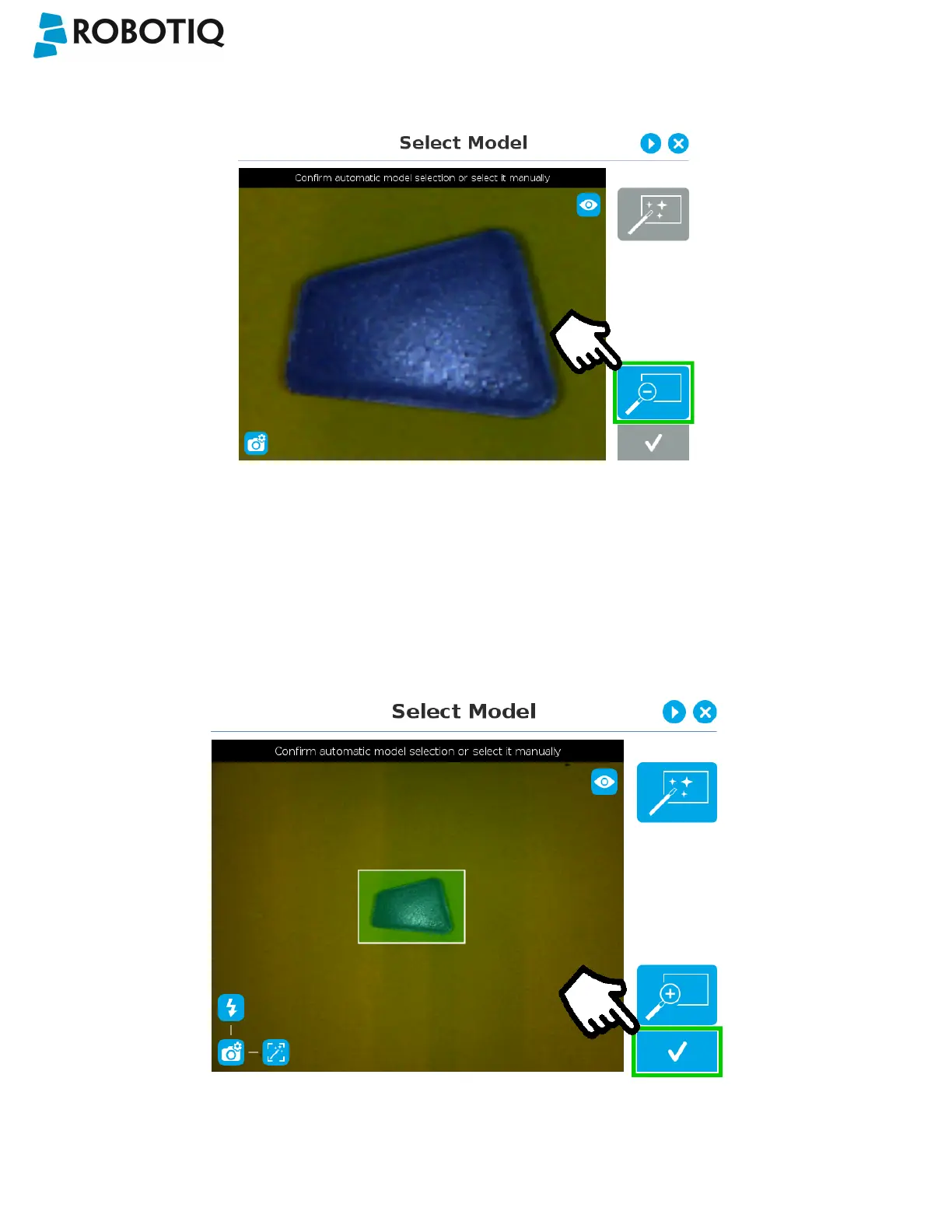 When the view of the model selected is satisfactory and you wish to carry on with the teaching wizard steps, tap the button