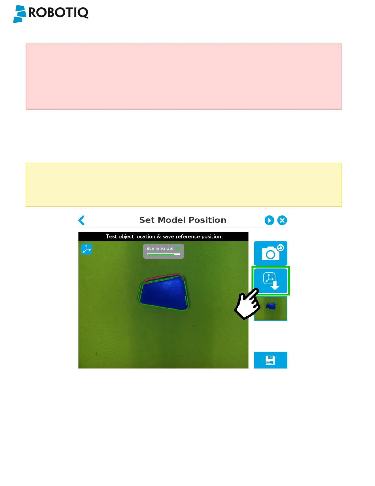 Once the position is saved, tap the Save & Reset button in the lower right corner of the teach pendant interface.