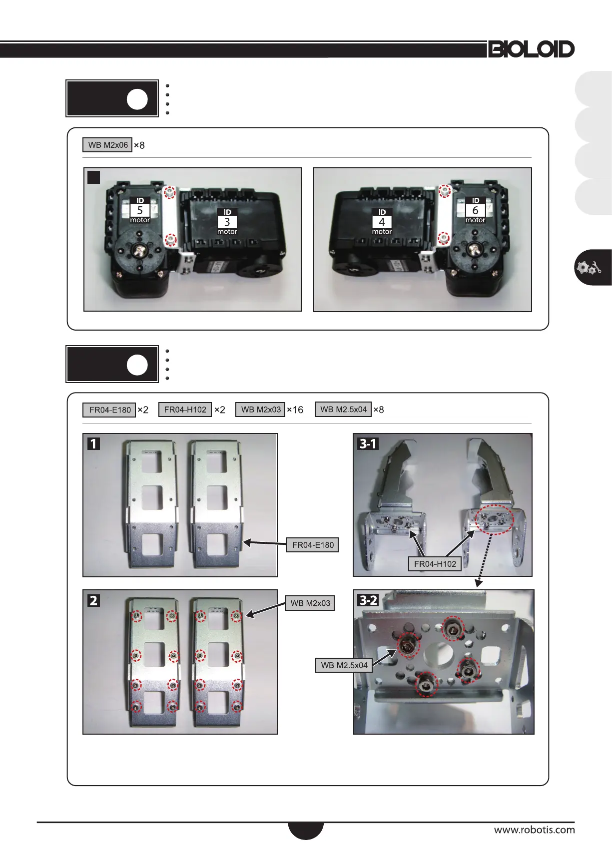 AX-12A ID3과 ID5, ID4와 ID6을 체결한다.