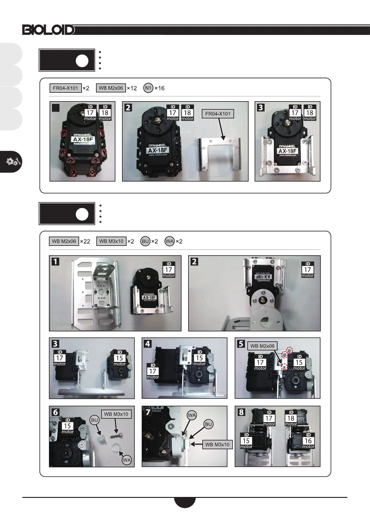 将螺母插入到编号为ID17和ID18的AX-18A上,然后连接到FR04-X101交叉型连接件上。