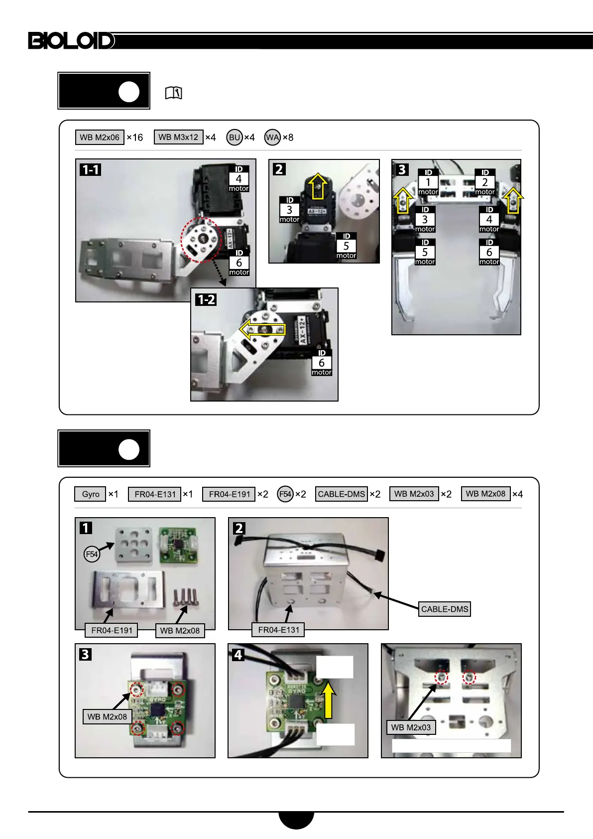 Robotis BIOLOID GP - Assembly Guide: Part 4 (Steps 7-8); Hand, Arm, and Gyroscope Assembly
