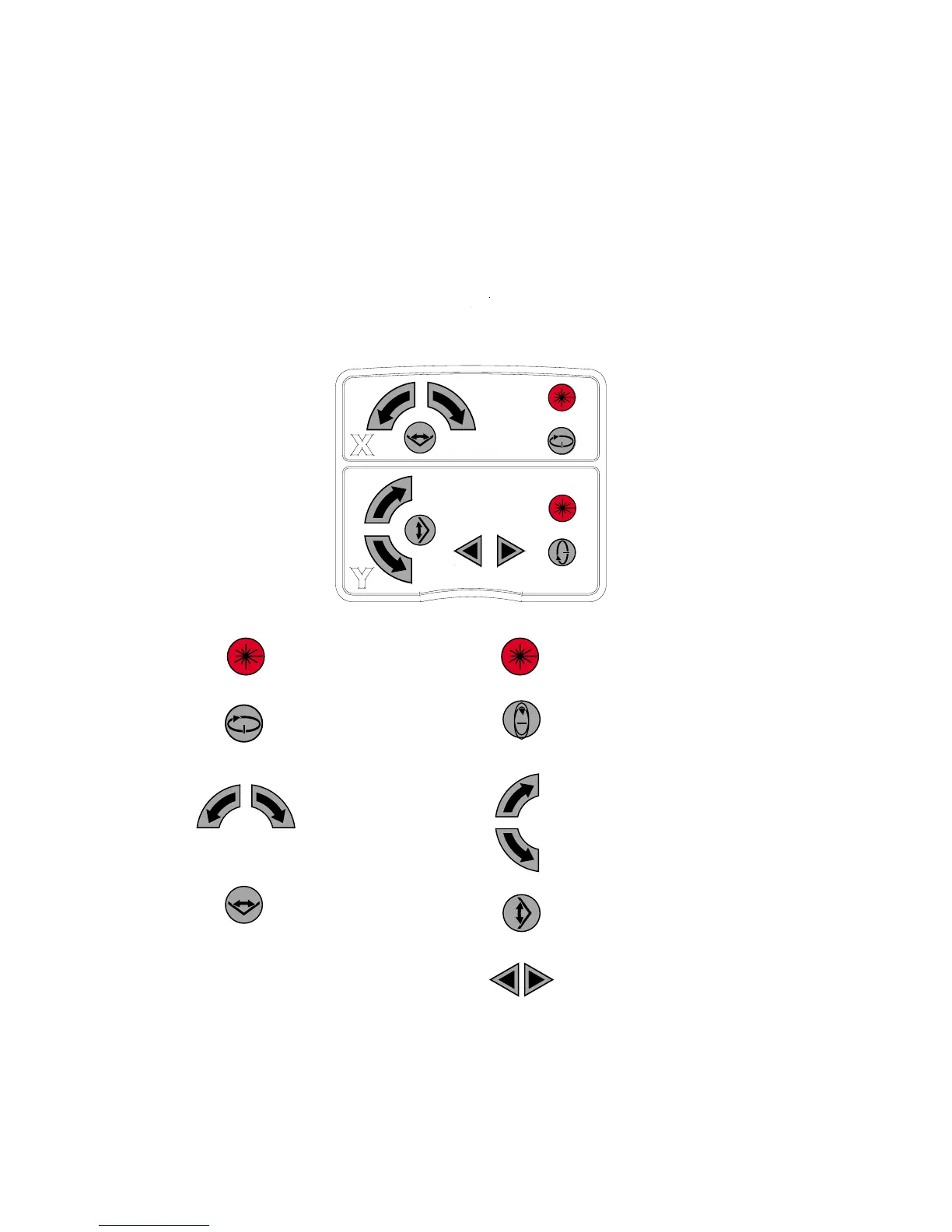 Laser control functions are available from both the base unit and RF remote control/laser