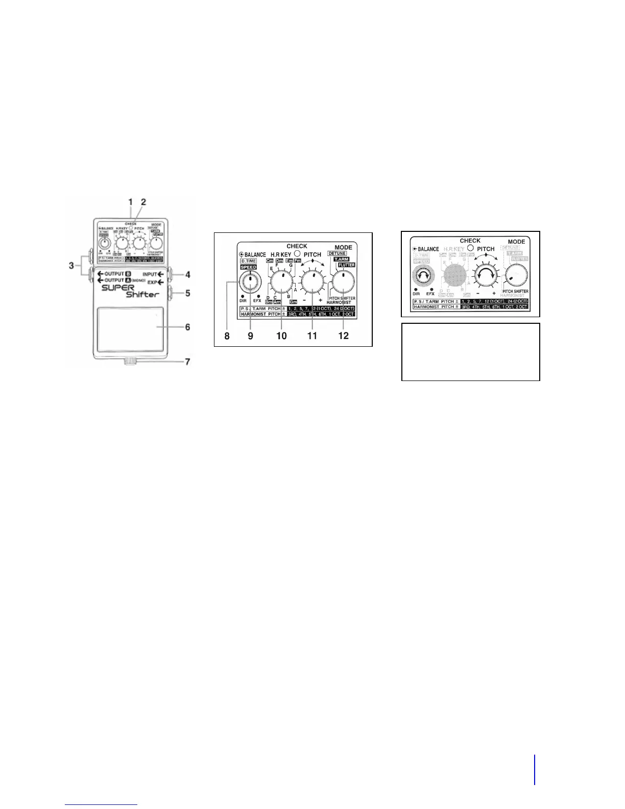 12. Mode Switch. Selects the mode. Typically use the pitch shifter mode.