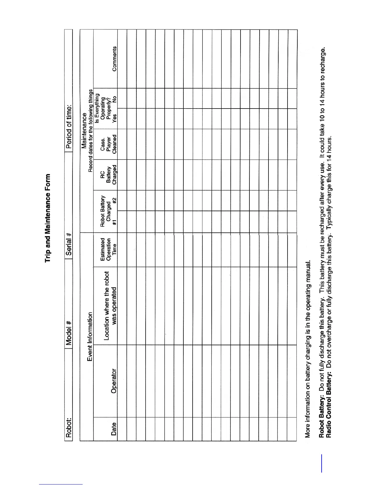 Robotronics Vehicle Robot - Maintenance Form