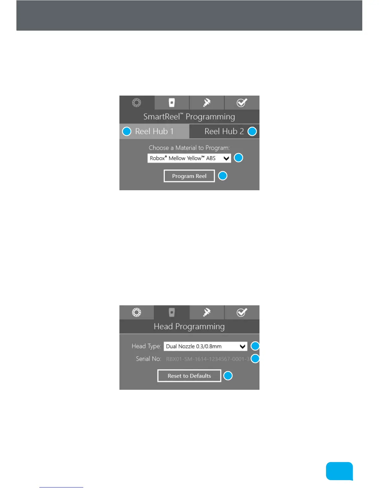 This page is for writing custom material parameters to a Robox® SmartReel™.