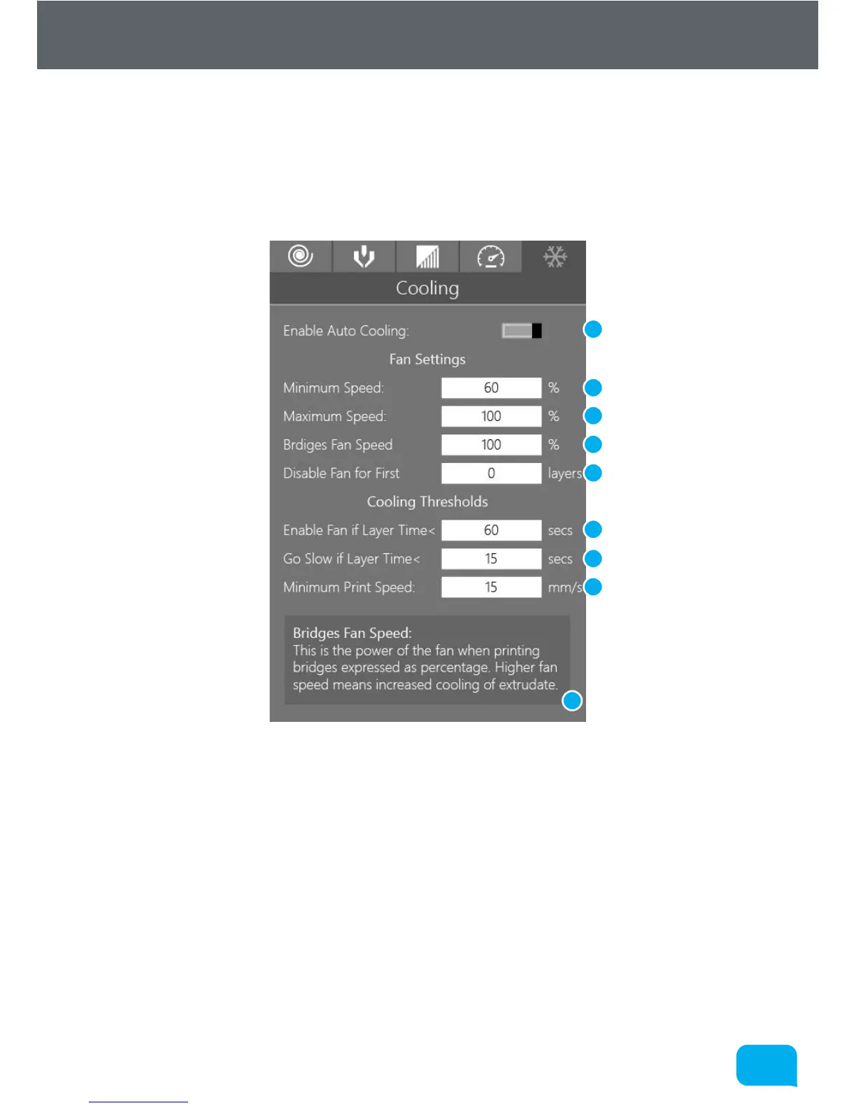 1 Enable Automatic Cooling 6 Enable Fan if Layer Time <