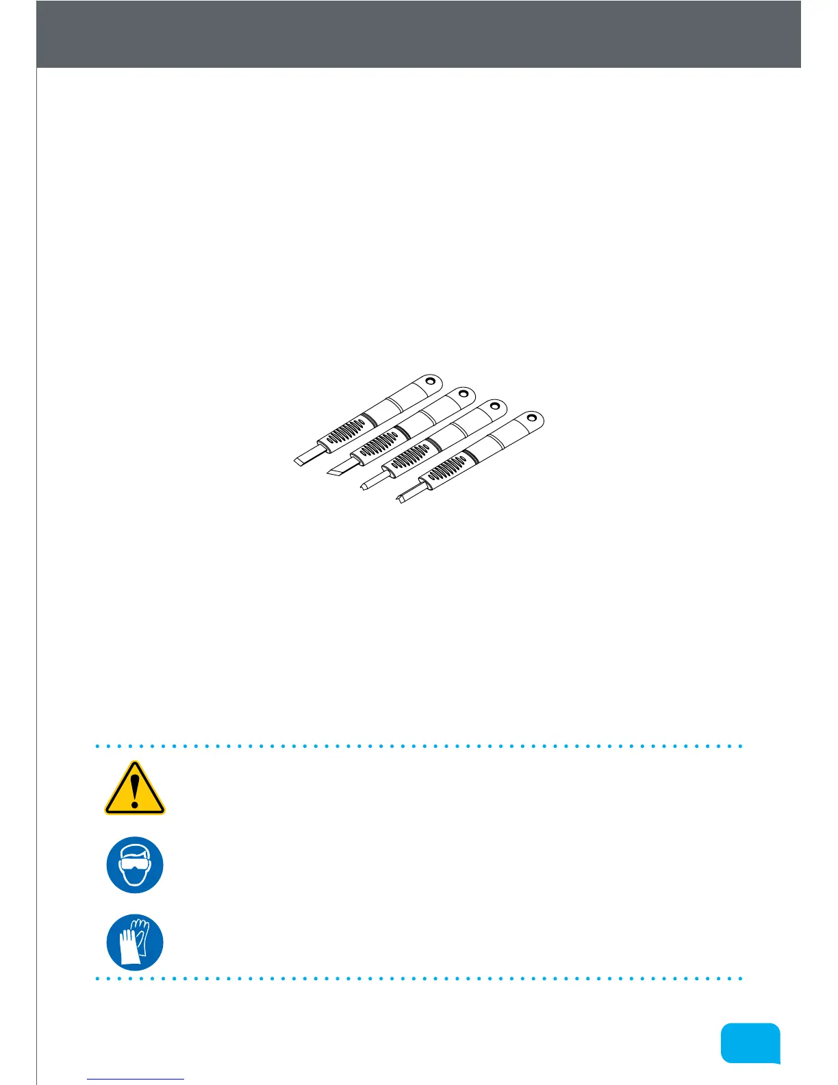 • WARNING! The set of cleanup tools are very sharp - please take extreme