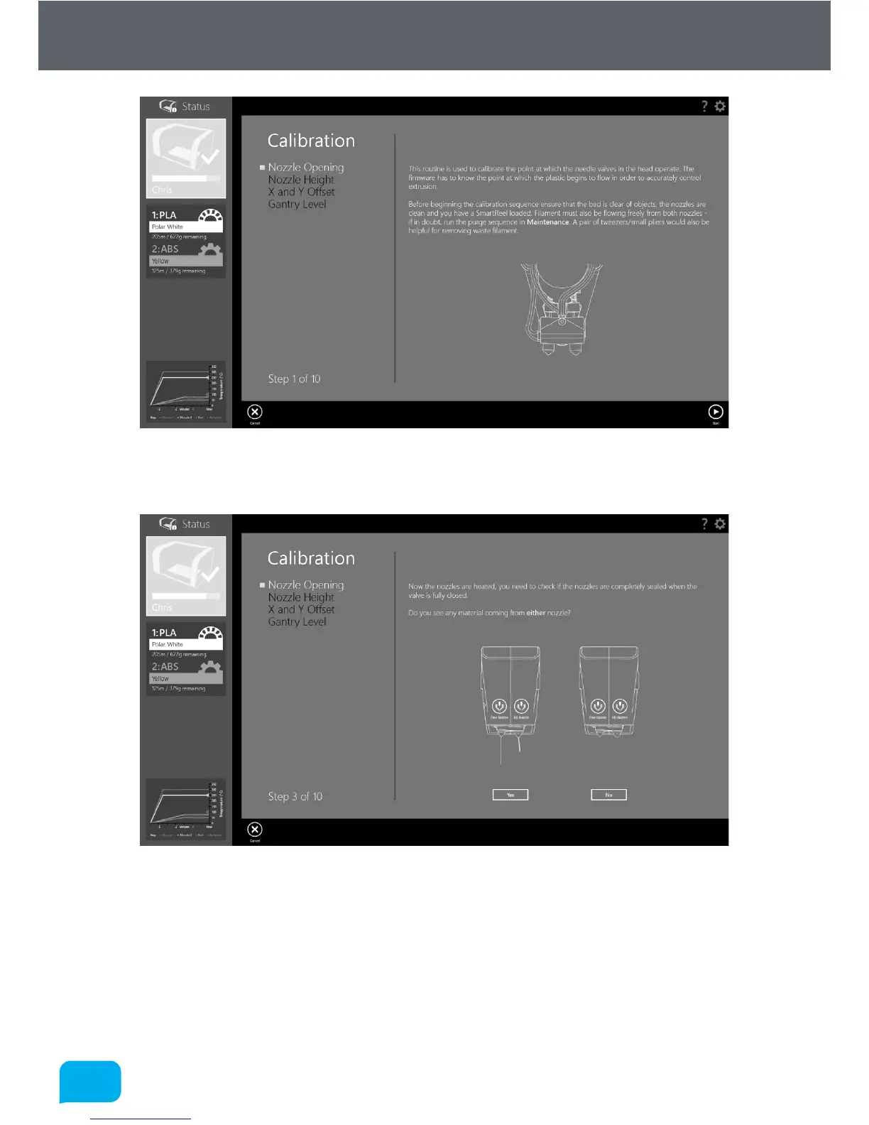 Click Start to begin the calibration. AutoMaker™ will begin heating up the nozzles
