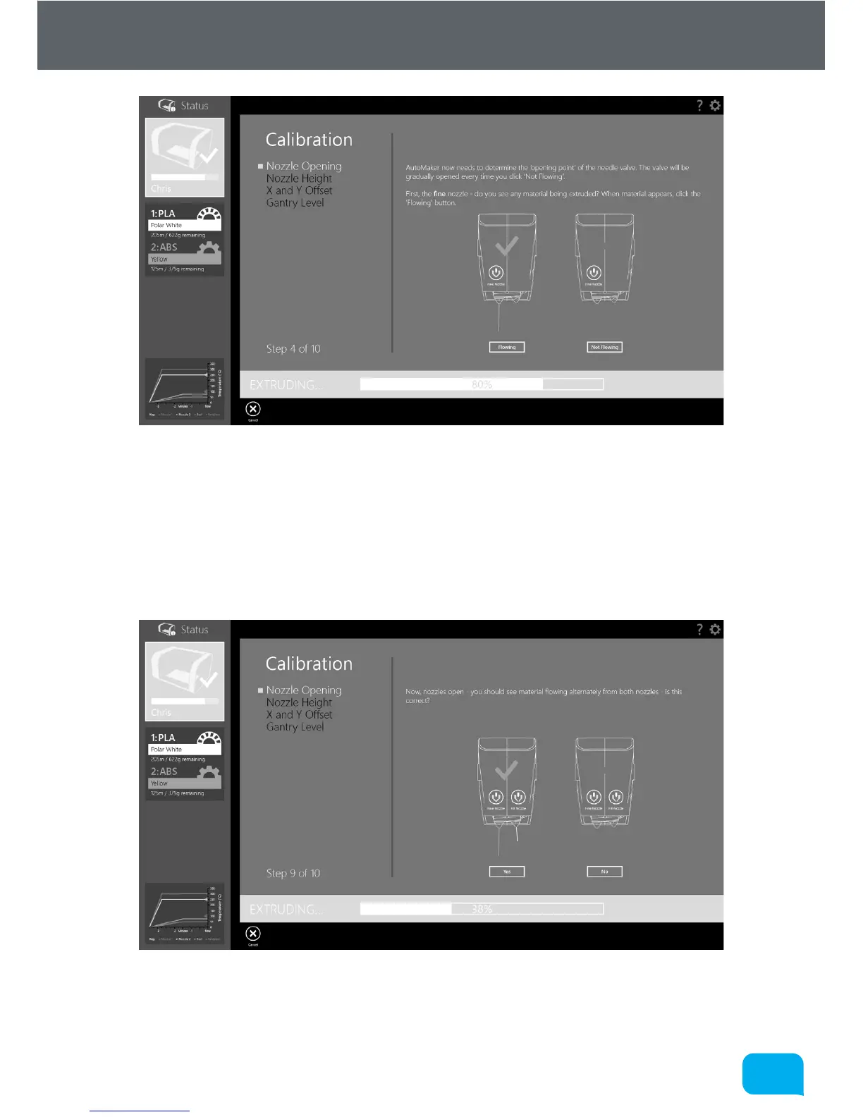 Finally, AutoMaker™ will verify the calibration results by testing extrusion with the