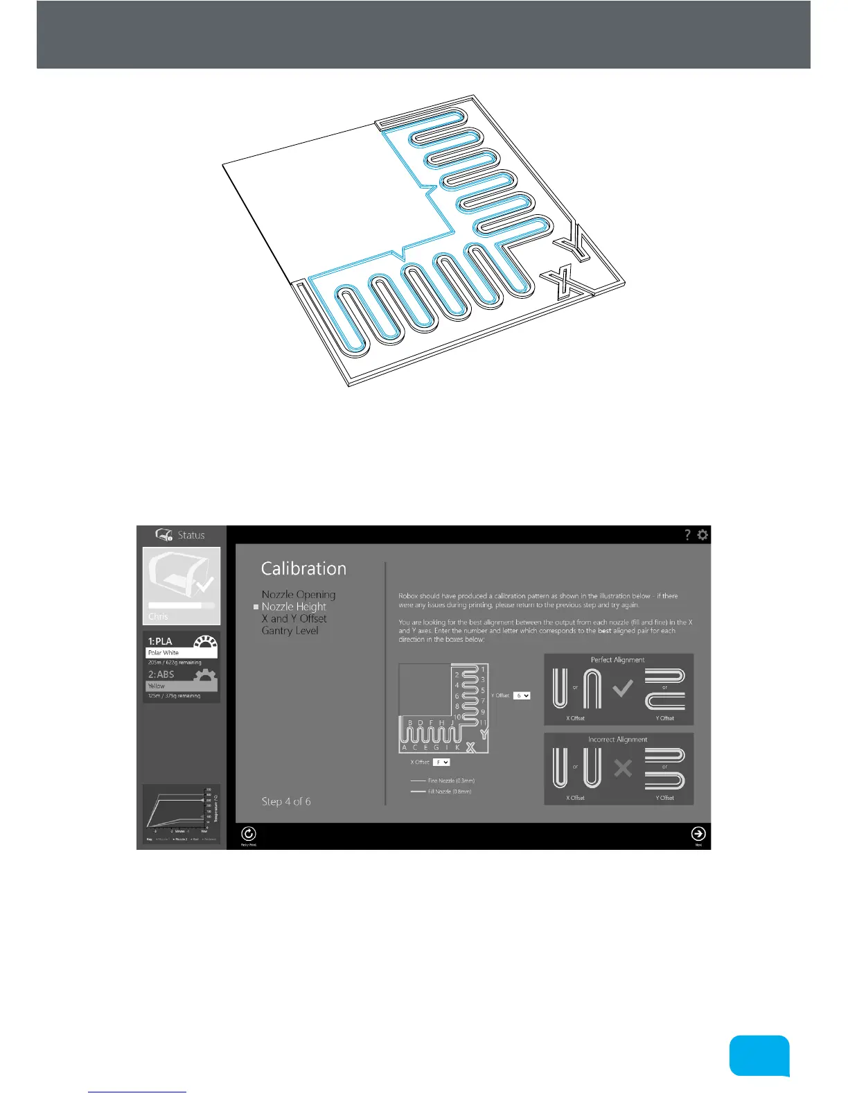 the fine nozzle shown in blue. Once the print has finished, DO NOT remove the