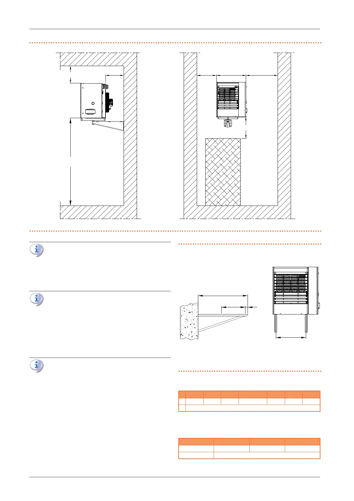 Table2.1 Support bracket dimensions for axial gas unit heaters