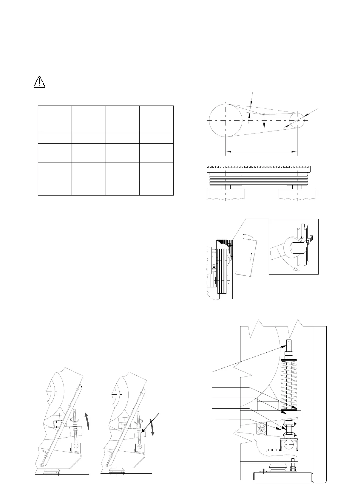 Check the V-belt tension following the parameters in the table, eventually correct it by the spring of the tightening device