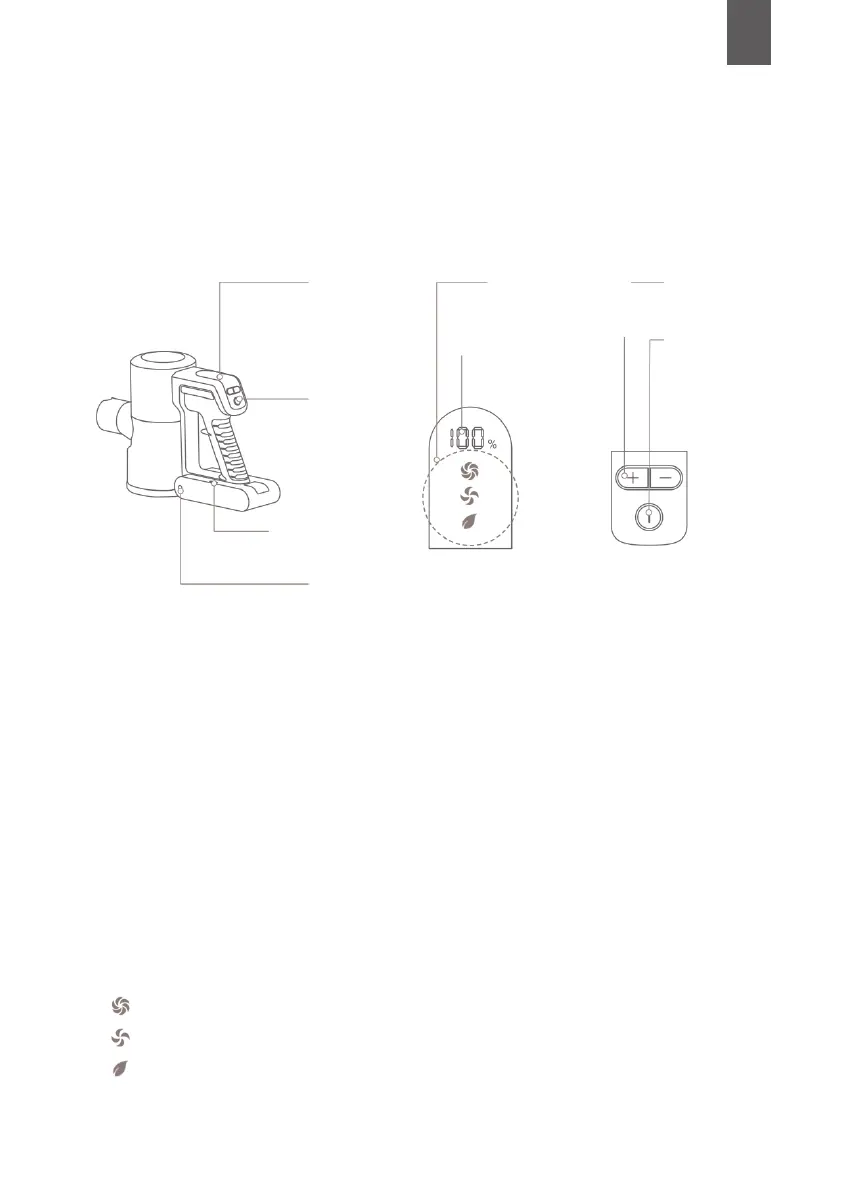 Basculer entre les niveaux de puissance : appuyez sur le bouton « + » pour augmenter l’aspiration,