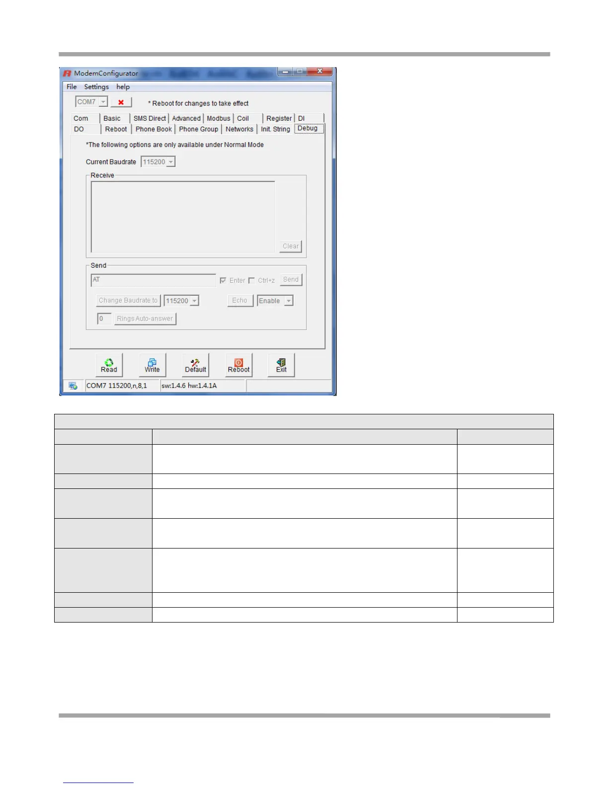 Input the AT commands in this windows